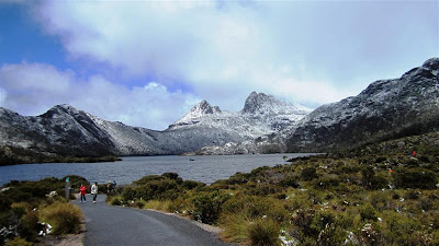 We signed our names for the shortest walk and started walking! The mountains had snow everywhere but it wasn't snowing so it was perfect! The thing that looks kinda like a cradle is cradle mountain!